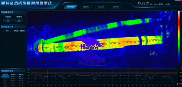 4方案亮点 ①高清精准测温红外热像仪红外分辨率可达1200×600,即使在高温环境下,也能输出高清、流畅、不丢帧的红外图像,确保每个像素点测温精准。 ②可视化状态监测红外画面直观实时呈现筒体工作状态,通过温度分布情况可判断筒体内壁厚薄、定位裂纹位置、定位窑内结圈情况等。 ③非接触式远程监测红外图像实时传输至测温分析平台,可通过监控平台实时检测窑体工作状态,无需到达现场。 ④智能告警支持基于预设阈值的智能高温报警,所有报警信息可追溯、可查询,便于安全生产管理。