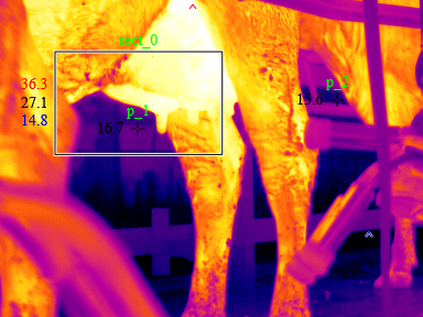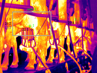 以下为某奶牛养殖场针对奶牛乳房病变进行热像监测的效果图