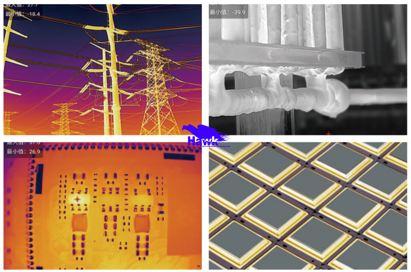 4.最高支持35个点/线/区,可分析画面中更多温度细节 应用领域:电力巡检、无损检测、微电子、科学研究