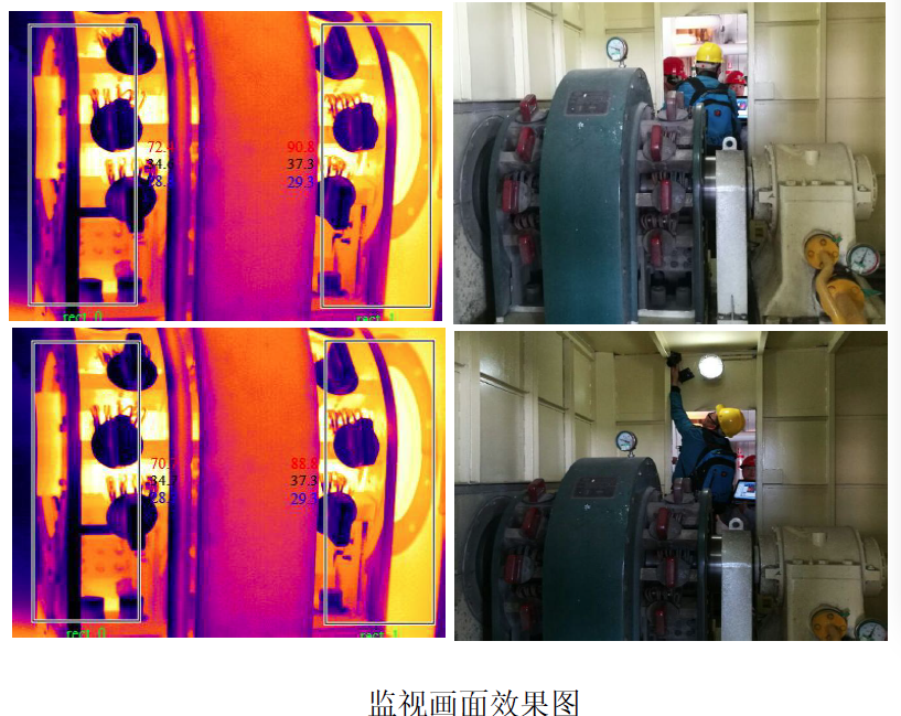 一、客户现状、要求。 经了解,目前众多电厂的发电机滑环或多或少都出现过温度异常现象,大多电厂采用(一)红外点温仪进行测量,点温仪的进度低、温度漂移较大很多时候会造成温度测量不准,使得工作人员对于本来已经出现的高温隐患无法预知,如果温度继续升高会造成滑环等重要部件的损坏。(二)也有电厂在使用便携式红外热像仪进行周期性监测,这样可以达到精准测量,但是无法进行持续性监测,这样使得两次测量周期间的隐患不容易被发现,无法及时处理。 二、解决方案
